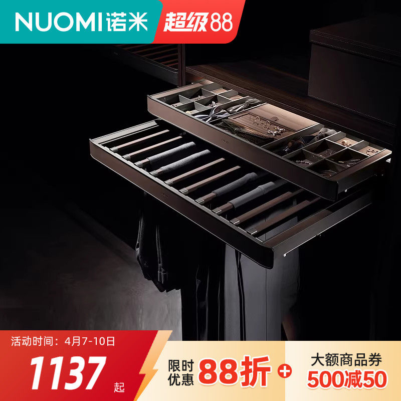 NUOMI诺米赫拉柜内裤架伸缩衣柜西裤架衣帽间阻尼多宝盒收纳拉篮