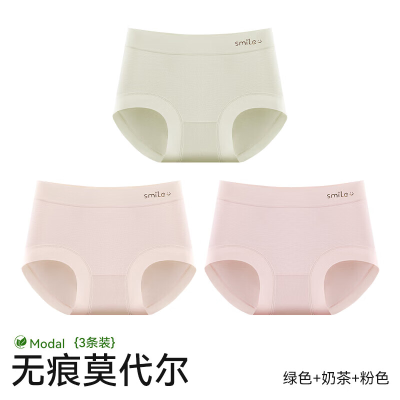 雅鹿莫代尔无痕内裤女士7a级抗菌裆2026新款少女生中腰三角裤 NSMXY-绿色+奶茶+粉色 【50S莫代尔 7A抗菌】 3条 2XL 【建议140-160斤】