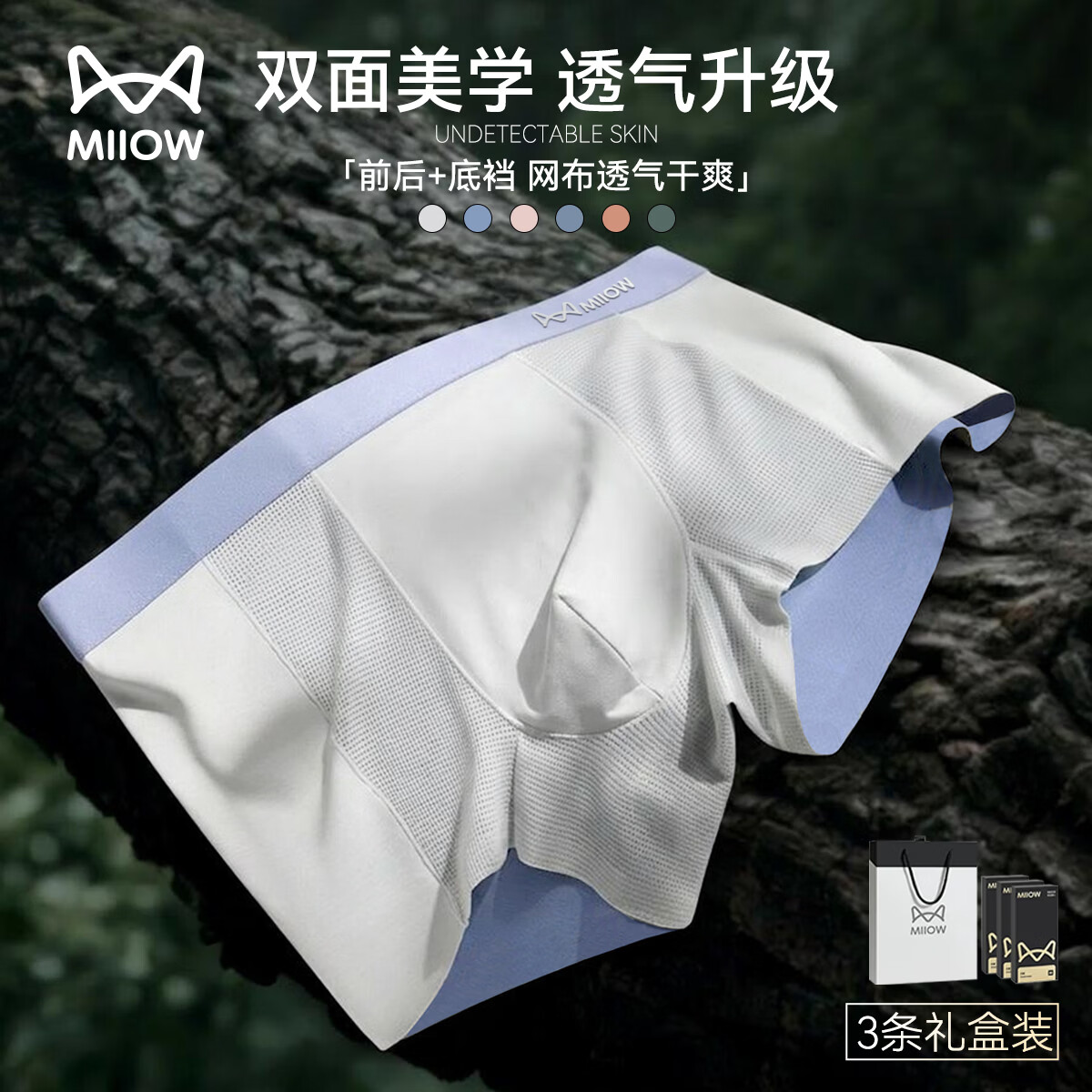 猫人(MiiOW)【尊奢典藏礼盒】男士内裤男双面无痕冰丝7A桑丝抗菌四角空调短裤 熔岩碳橘+云海灰蓝+日出蓝粉 3条 2XL 推荐140-160斤