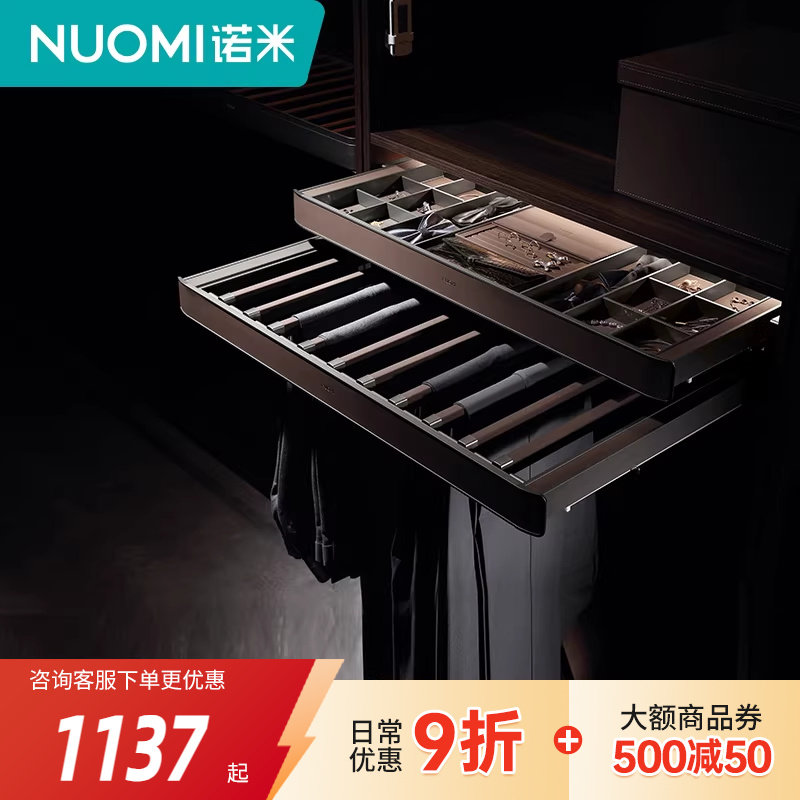 NUOMI诺米赫拉柜内裤架伸缩衣柜西裤架衣帽间阻尼多宝盒收纳拉篮