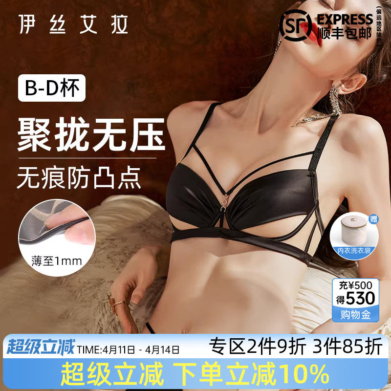 伊丝艾拉黑色内衣内裤套装女士性感禁欲系聚拢薄款细肩带美背文胸
