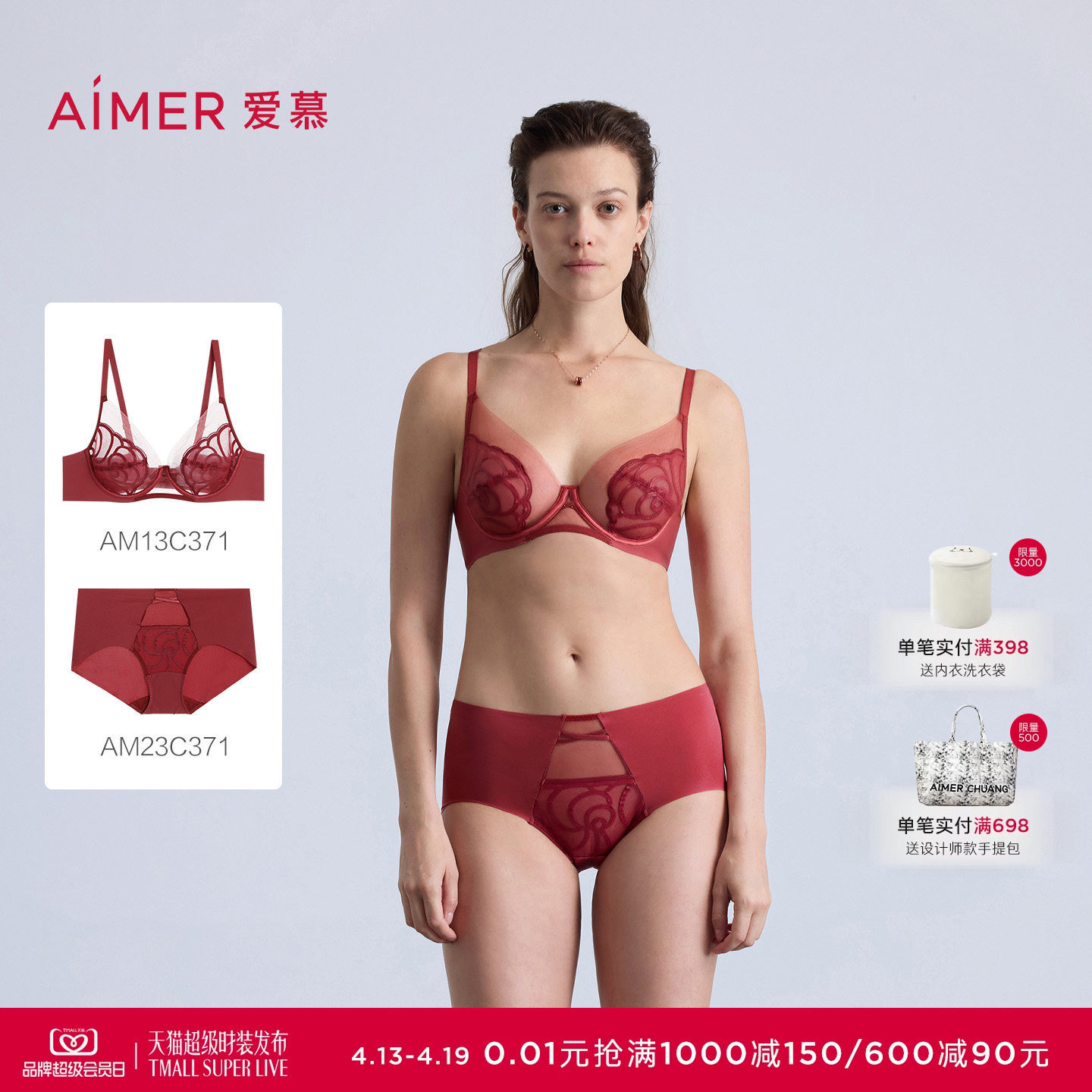 爱慕瑰丽内衣女性感轻薄杯本命年红品大胸显小大罩杯文胸内裤套装