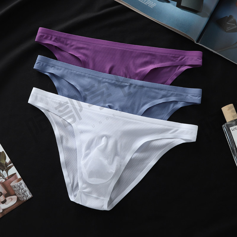 2条男士三角内裤男生低腰冰丝无痕夏季薄款一片式U凸螺纹凉感速干