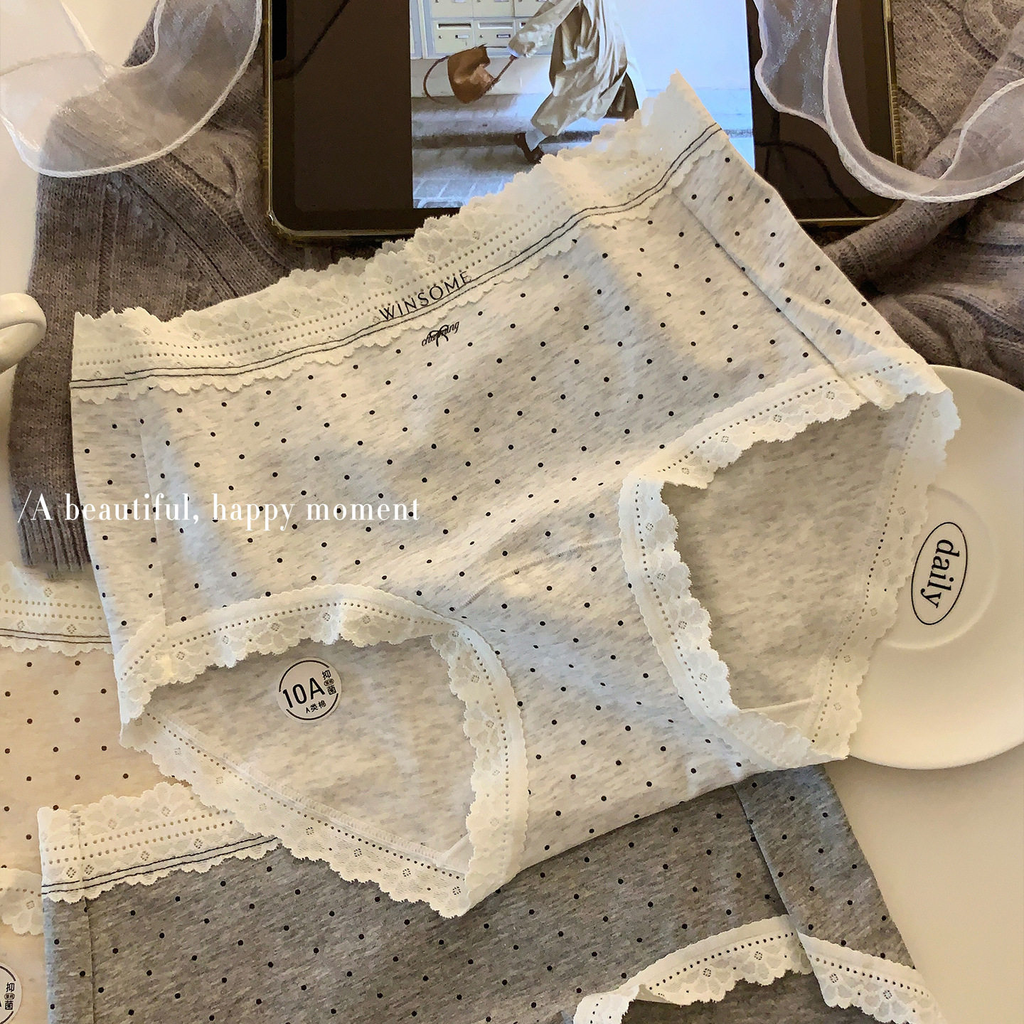法式波点蕾丝边少女内裤女纯棉10A抗菌加长裆中腰A类棉女士批发