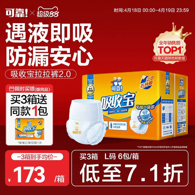 可靠吸收宝2.0成人拉拉裤老年人用内裤型纸尿裤男女尿不湿整箱