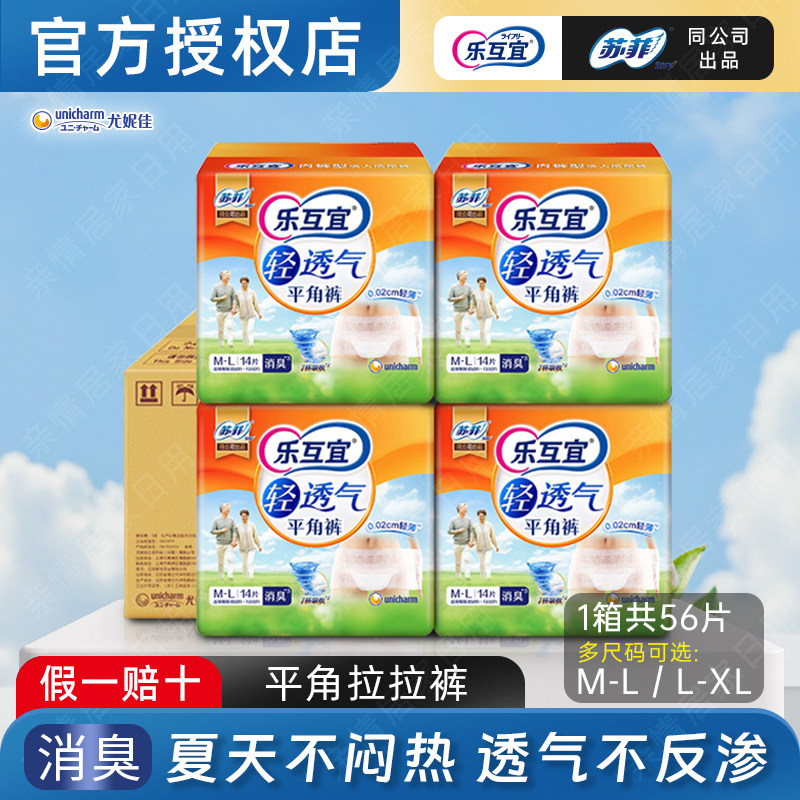 乐互宜轻透气成人平角拉拉裤老人拉拉裤男女内裤尿不湿4包56片装