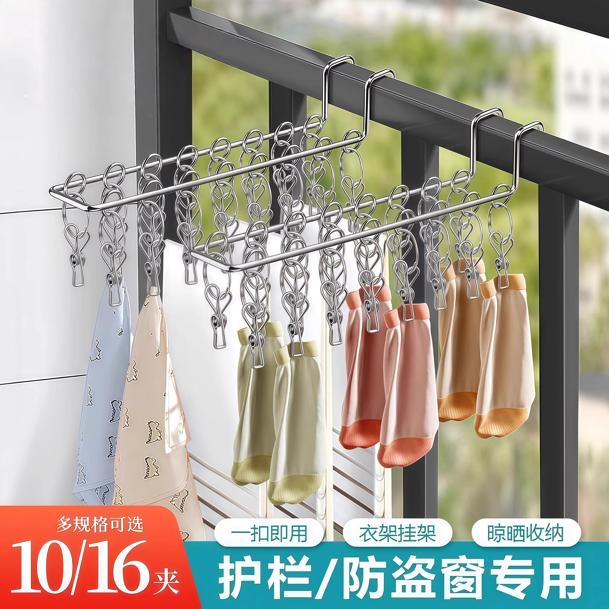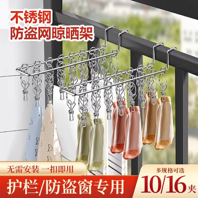 阳台晒袜子神器不锈钢学生宿舍防风挂架晾衣架多夹子内衣内裤专用