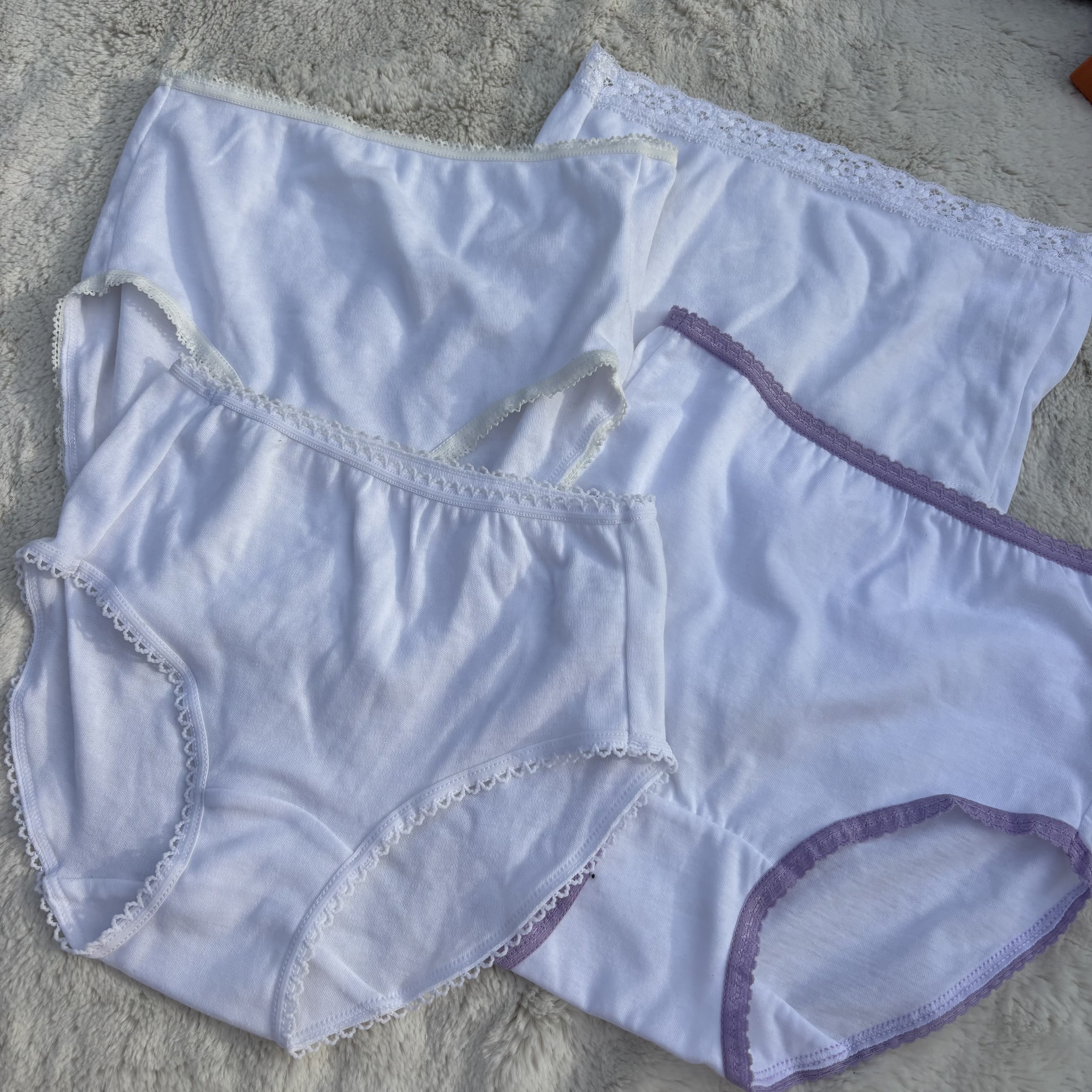 超软!外贸日单100%纯棉女士高腰白色 内裤蕾丝边全棉包臀三角裤