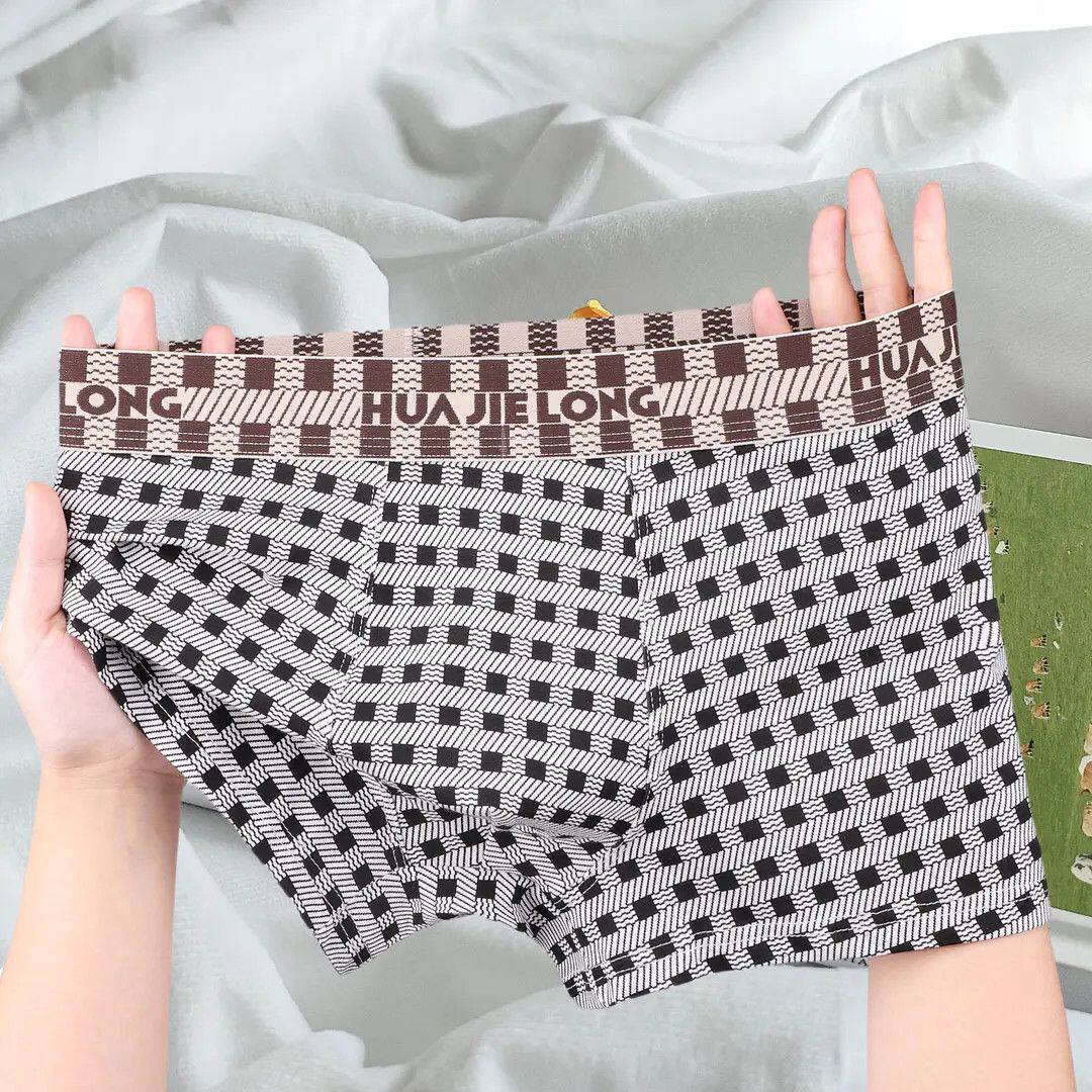 潮流男士内裤透气吸汗速干格纹平角内裤舒适不勒腰四角短裤平角裤