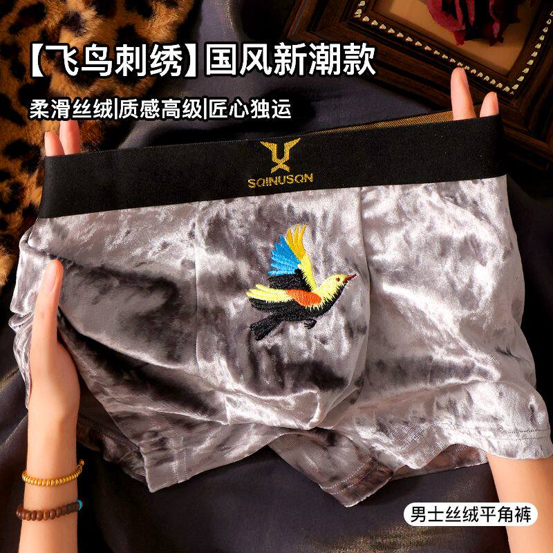 男士内裤2026新款中腰奢华国风潮流丝绒刺绣款男四角短裤衩