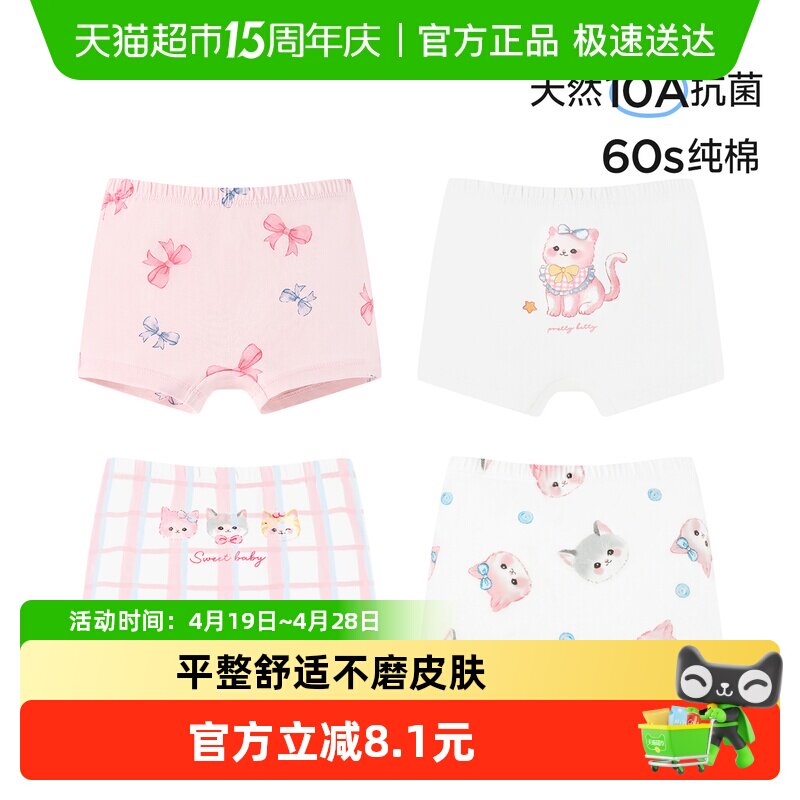 尼多熊2025儿童内裤女童平角裤宝宝四角短裤女孩抗菌不夹裤头