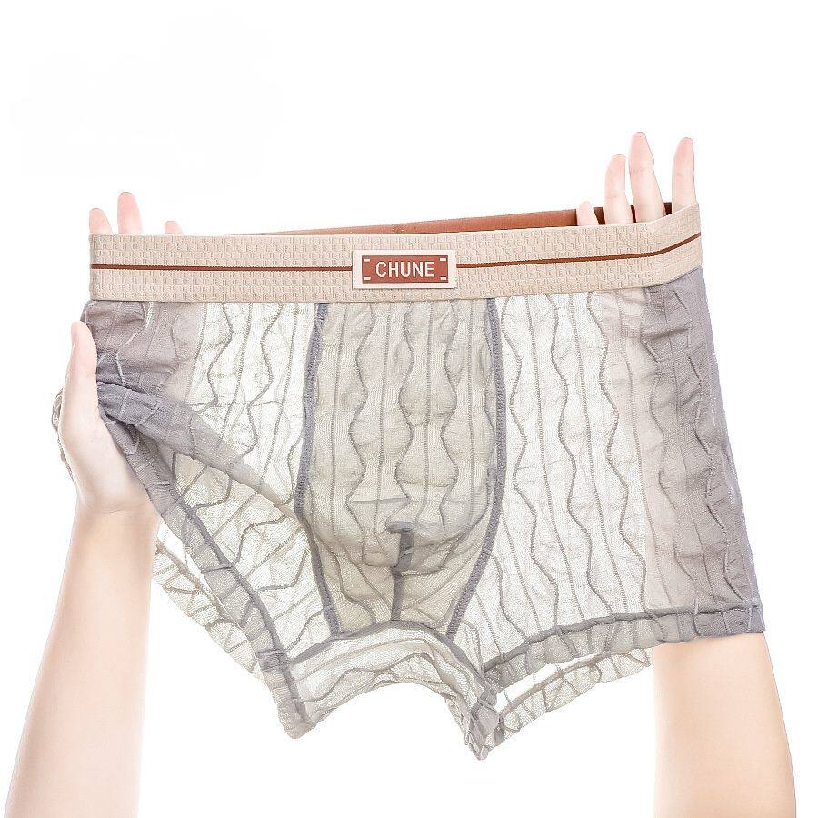 冰丝内裤新款纹理裤头男士中腰四角裤男大码透气男款平角裤薄款男
