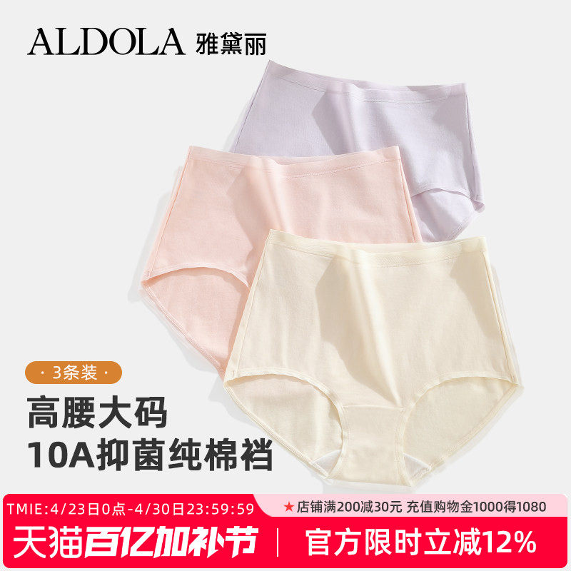 雅黛俪新款中高腰无痕内裤女10A抑菌纯棉加长底档大码弹力三角裤