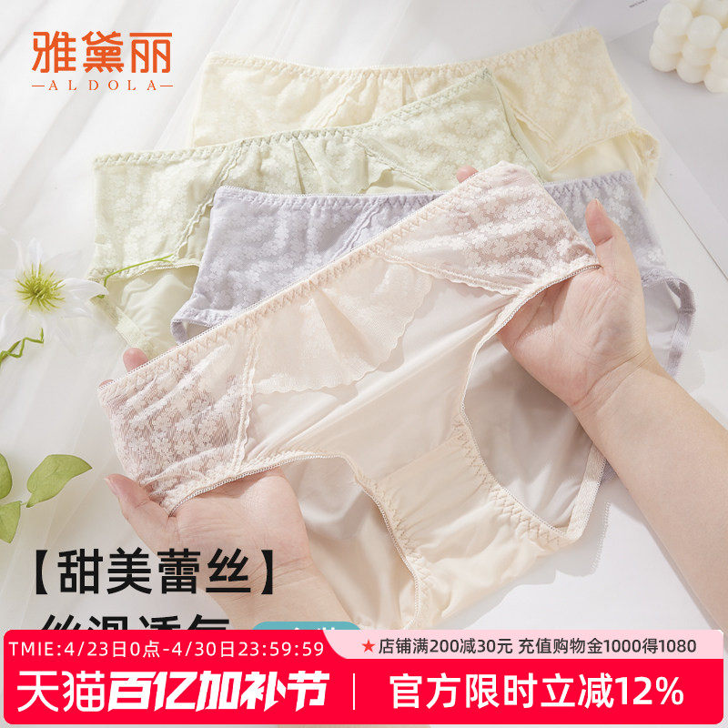 雅黛丽性感蕾丝中腰内裤女纯棉裆全包裹高弹不勒大码三角裤短裤衩