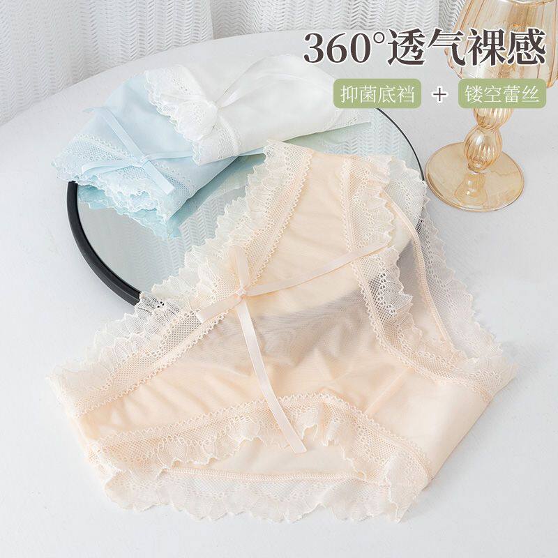 中腰时尚少女生三角裤蕾丝内裤女士纯棉全棉裆部透气薄款透明性感