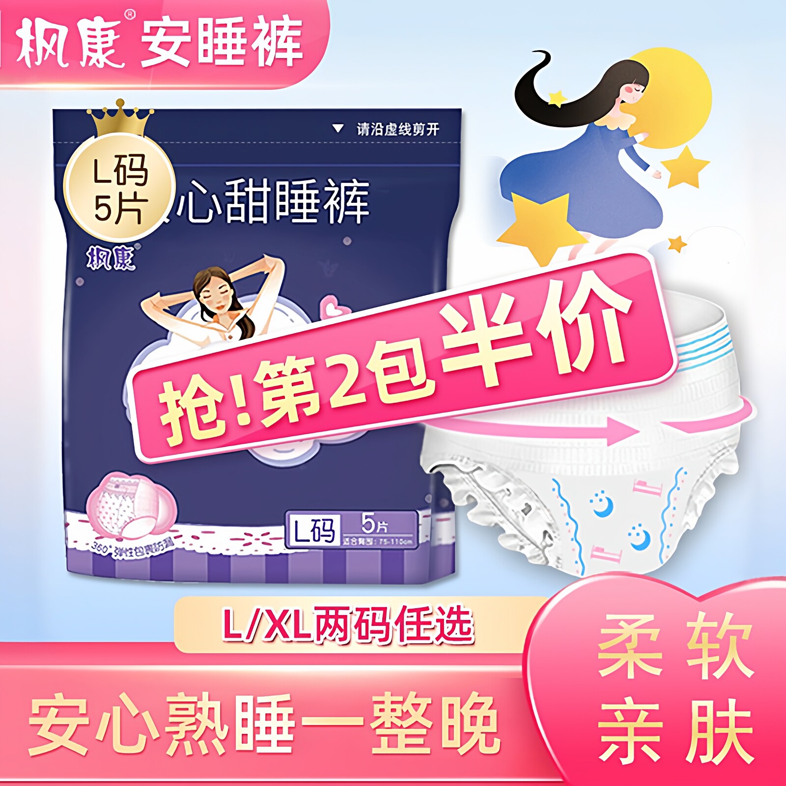 枫康安心裤夜用经期裤L/XL成人拉拉裤产后裤型卫生巾姨妈裤内裤型