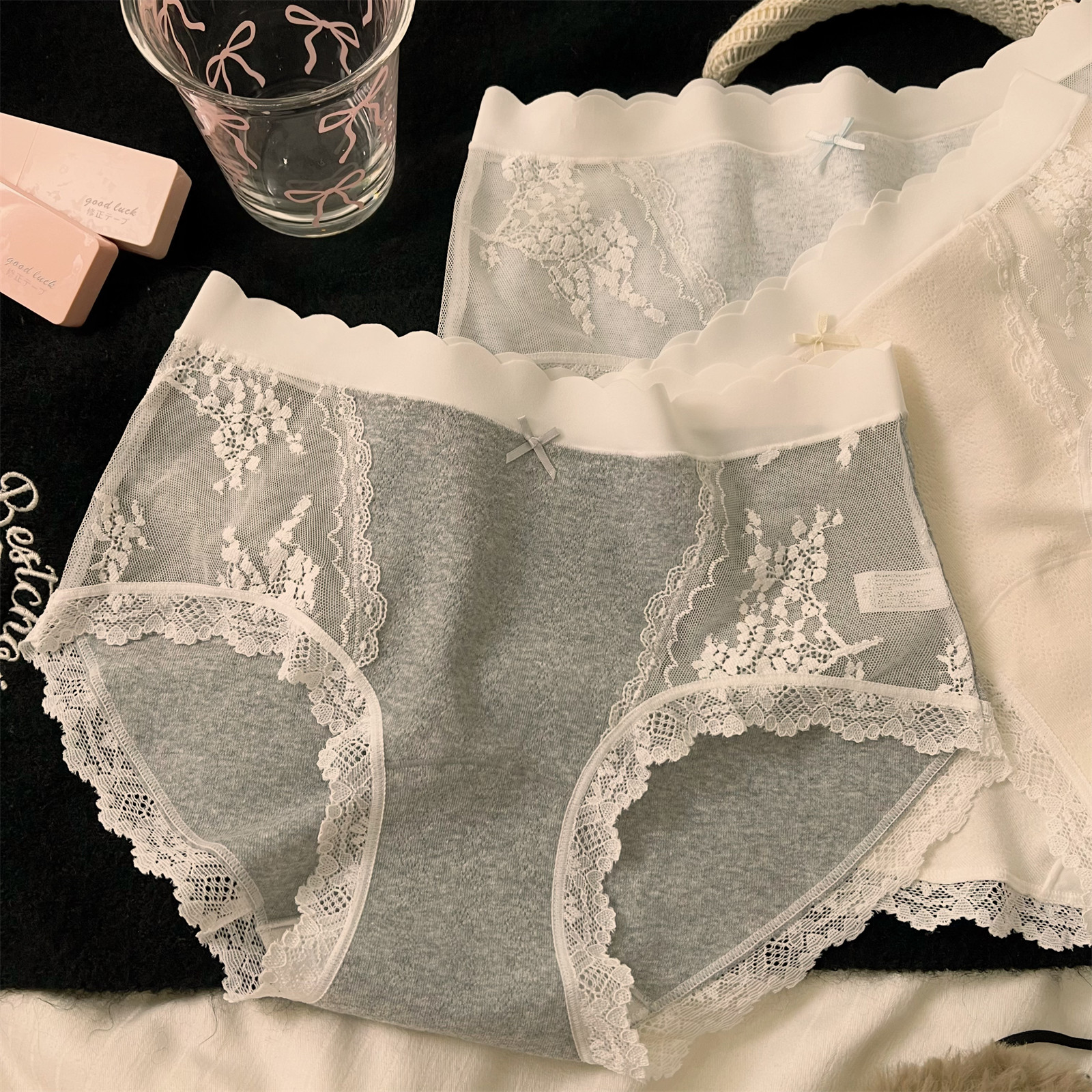 法式蕾丝女内裤纯欲性感中腰蕾丝内裤女透气高弹蕾丝内裤女高品质