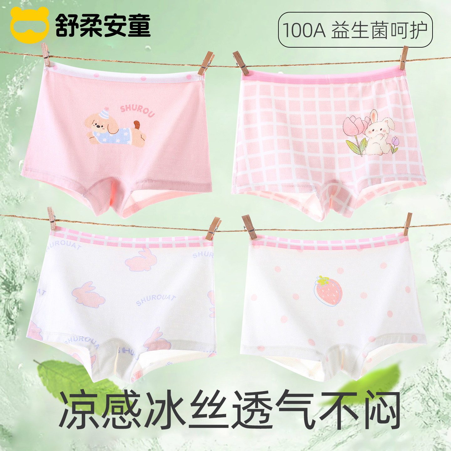 2026女童夏季新款透气冰丝网眼平角内裤女宝宝不夹屁屁舒适底裤