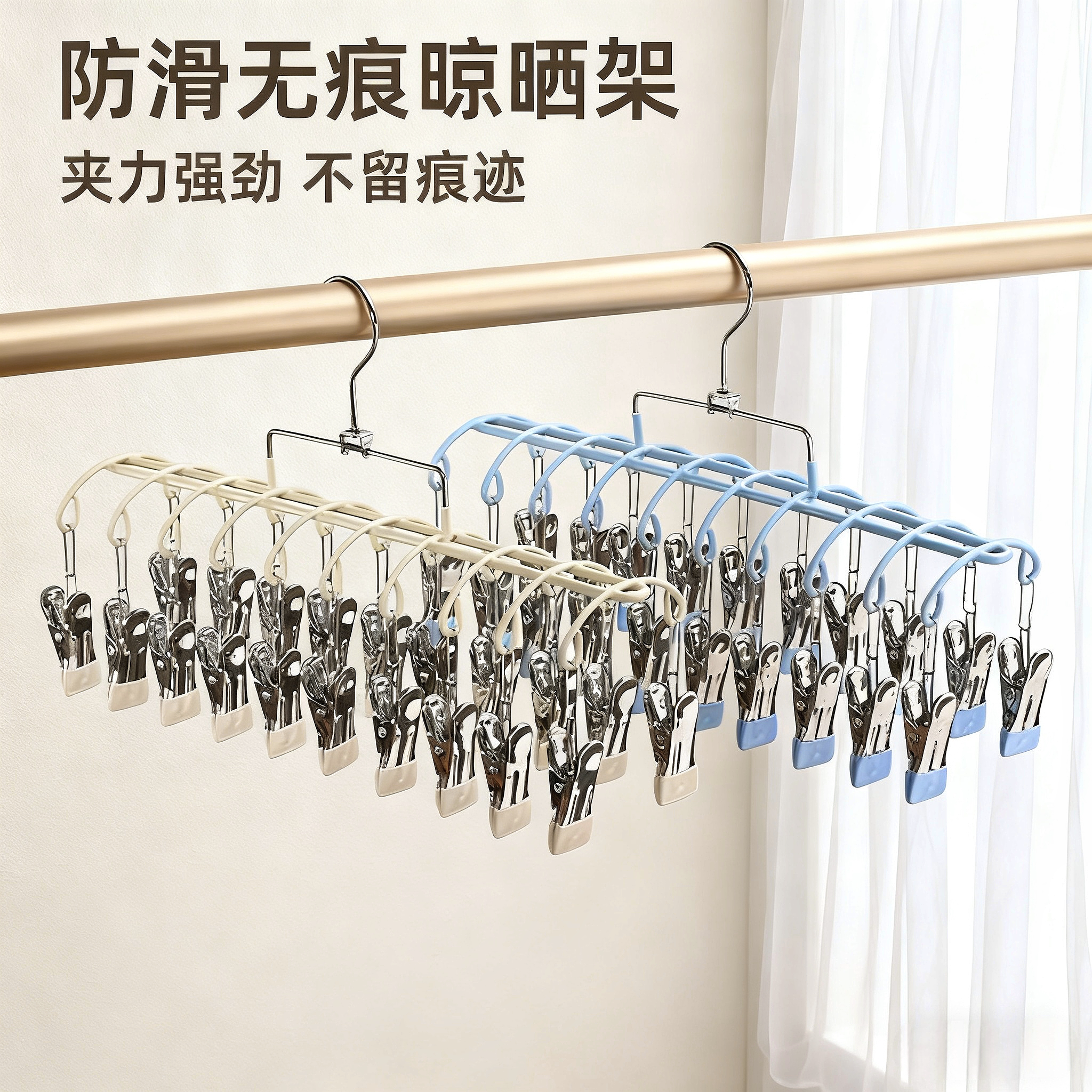 不锈钢多夹子袜子晾晒架家用阳台晾内衣内裤神器防风衣架婴儿袜夹