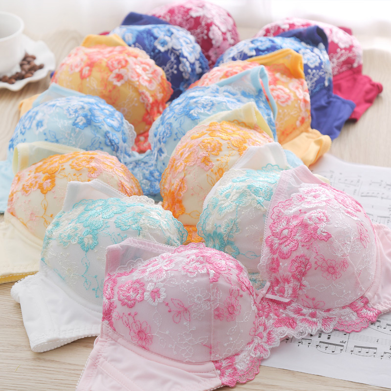 外贸出口日单性感刺绣网纱大码文胸甜美日系上薄下厚内衣内裤套装