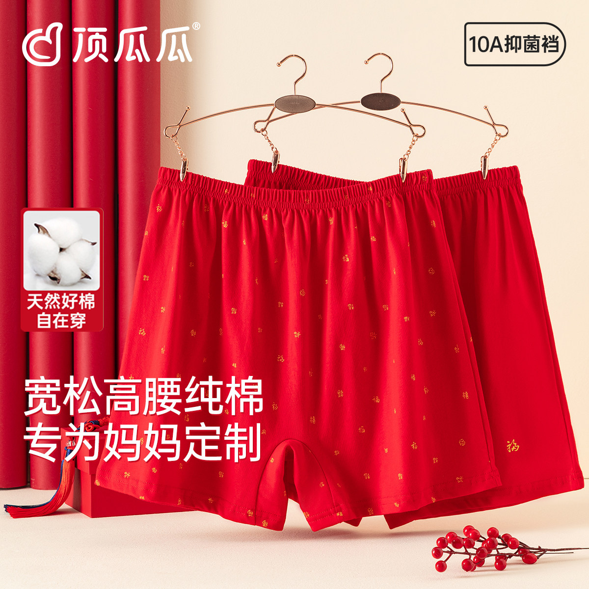 顶瓜瓜女纯棉大红色平角内裤顶呱呱宽松中老年彩棉底档打底短裤头
