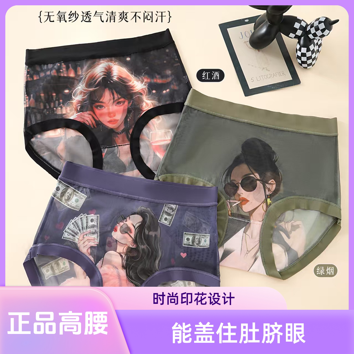 富姐内裤女2025新款高腰时尚裸感柔软网纱大码胖mm女三角裤头