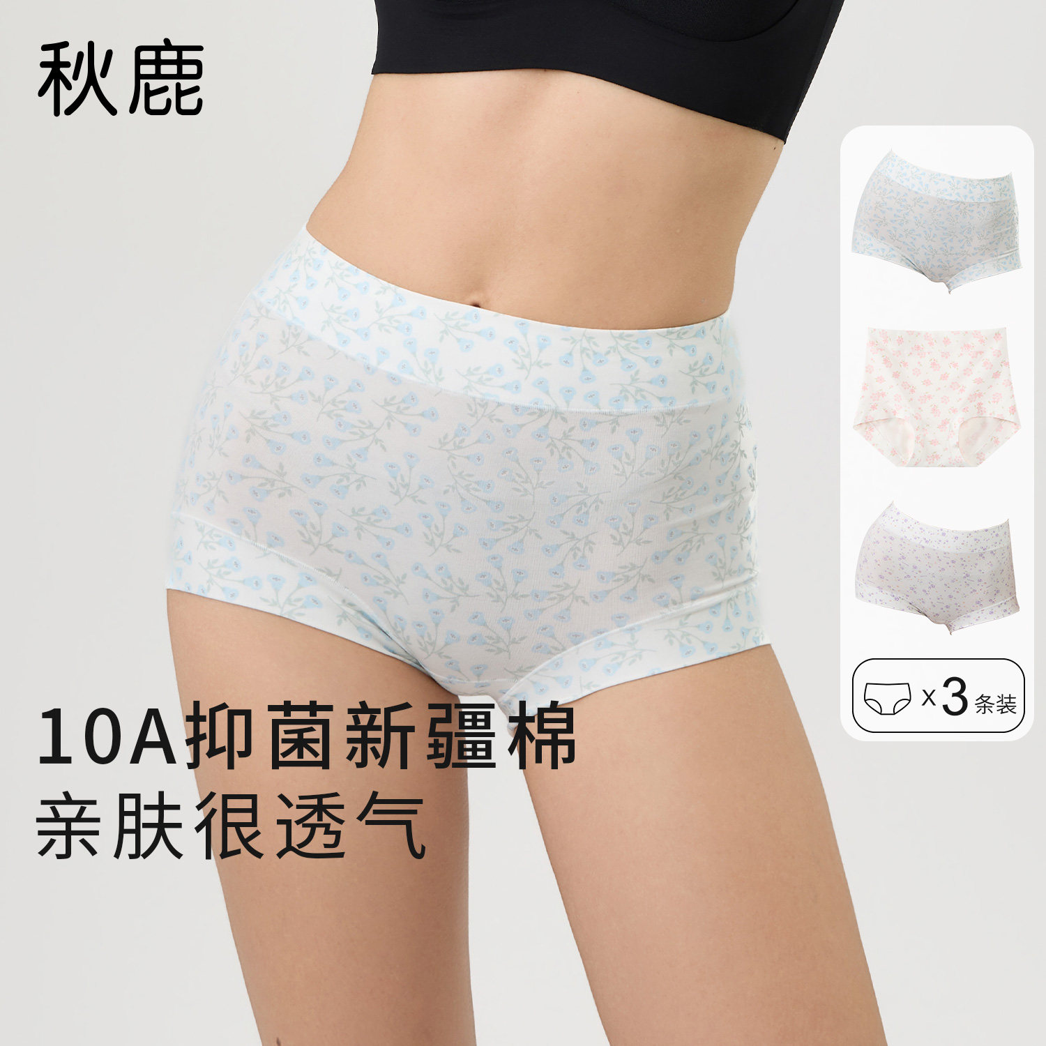 秋鹿50支新疆长绒棉内裤女超高腰提臀收腹印花舒适柔软无痕三角裤