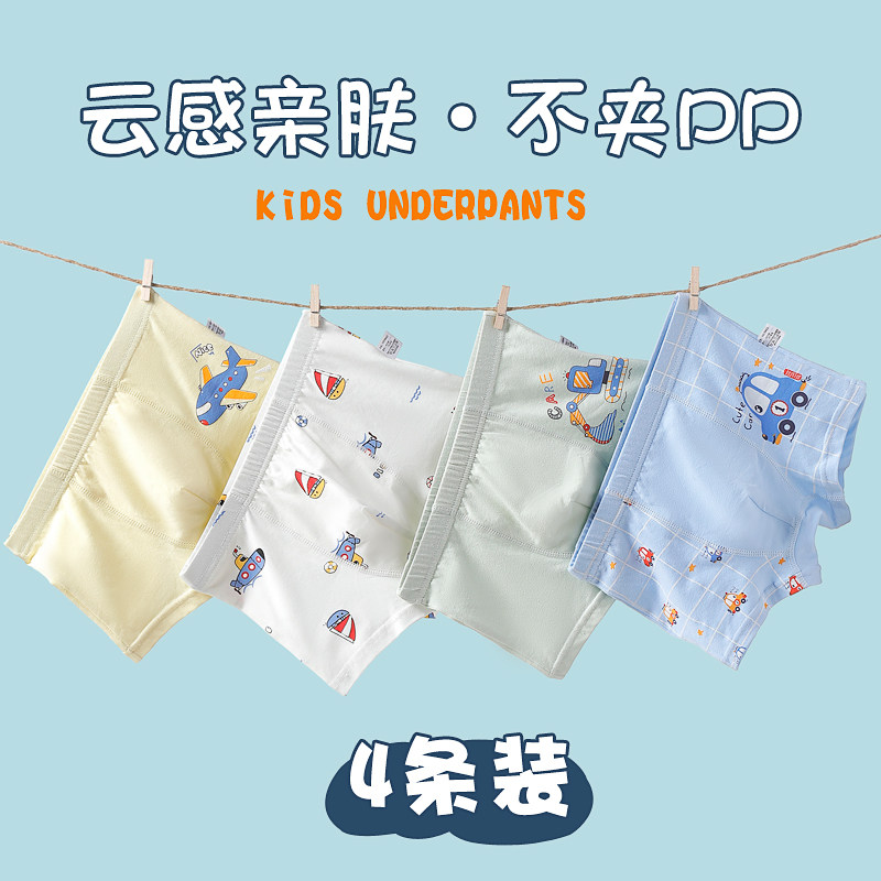 全棉母婴纯棉内裤儿童纯棉平角裤男孩四角短裤100%小童大男宝
