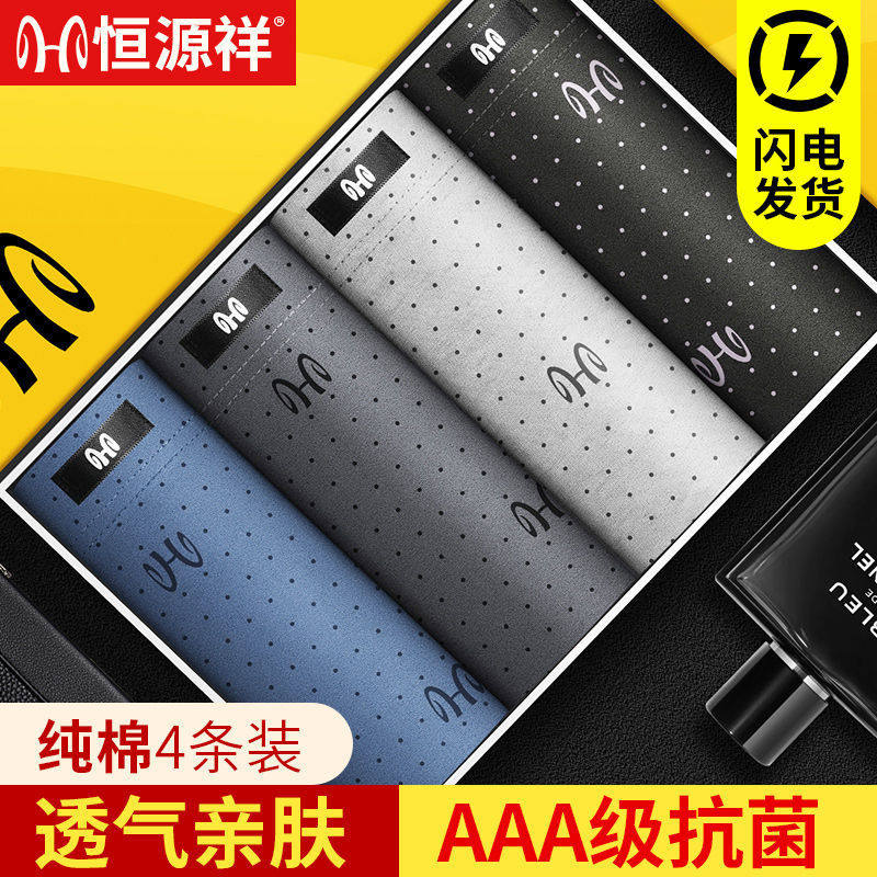 恒源祥男士内裤男平角裤纯棉透气抗菌内档大码短裤衩男生四角裤头