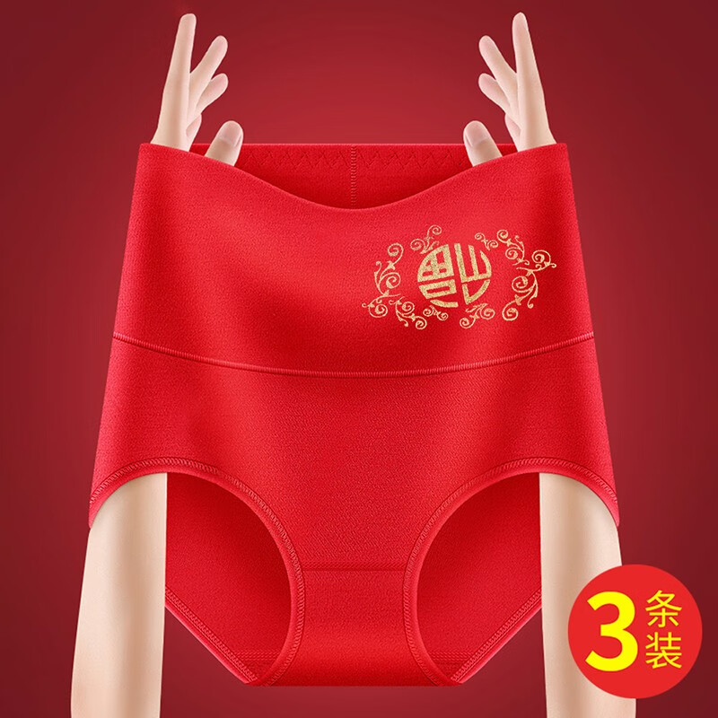 浓琪儿(3条装)95%棉本命年内裤女士高腰收腹大红色属虎年三角短裤头 3条95%棉鸿福+吉祥+福运 2XL(适合130-150斤)