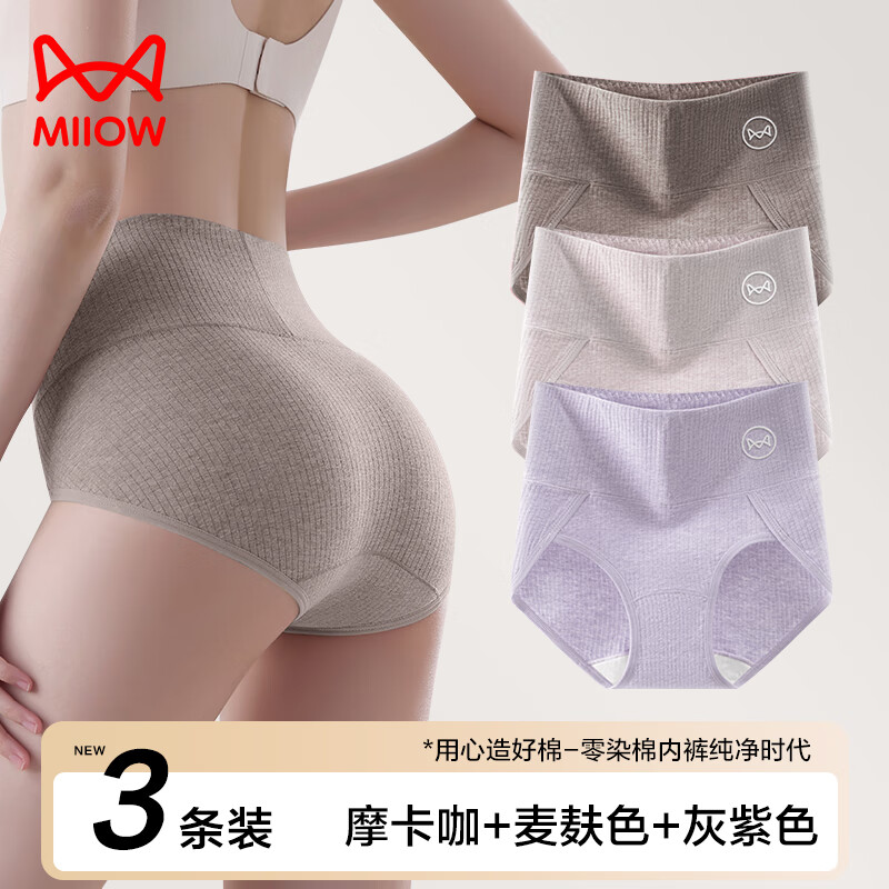 猫人高腰内裤女3条纯棉7A聚乳酸抑菌加长裆提臀收腹高开叉不勒腿内裤 A-摩卡咖+麦麸色+灰紫色 3条 2XL (140-160斤)