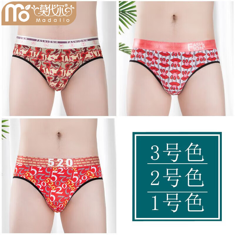 莫代尔本命年红色内裤男三角裤超薄冰丝男士内裤速干透气短裤印花潮 【3条装】1号色+2号色+3号色 XXL