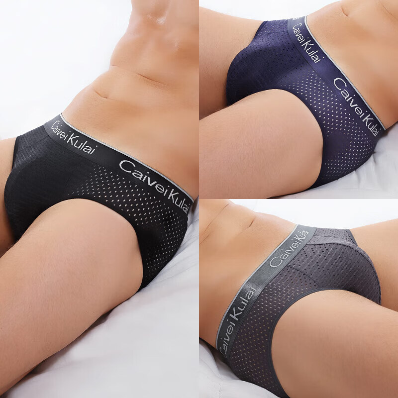 CK正品CK男士内裤三角裤冰丝网孔透气夏季镂空网眼超薄款短裤头 黑蓝铁灰 3条 2XL (140-160斤)