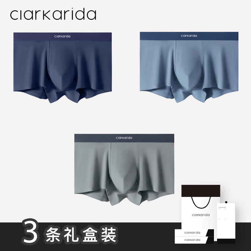 Clarkarida无痕男士内裤男生莫代尔纯棉冰丝抗菌四角平角透气短裤头裤衩礼盒 纯棉款 3条 2XL 130-160斤