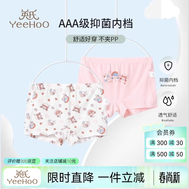 英氏(YEEHOO)2条装儿童内裤女童3A艾草抑菌A类透气内裤中大童抗菌平角三角短裤 萌趣女生 【两条装】 2条 150