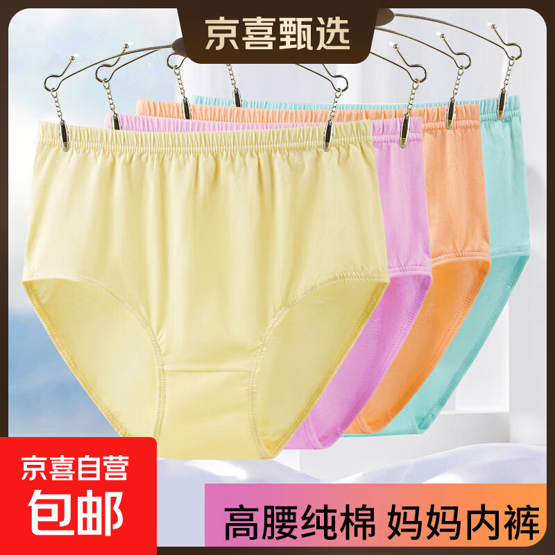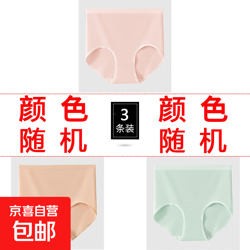 新疆棉高腰收腹女士内裤女舒适透气抗菌裆亲肤提臀女士三角短裤头 3条颜色随机 2XL