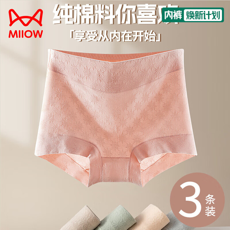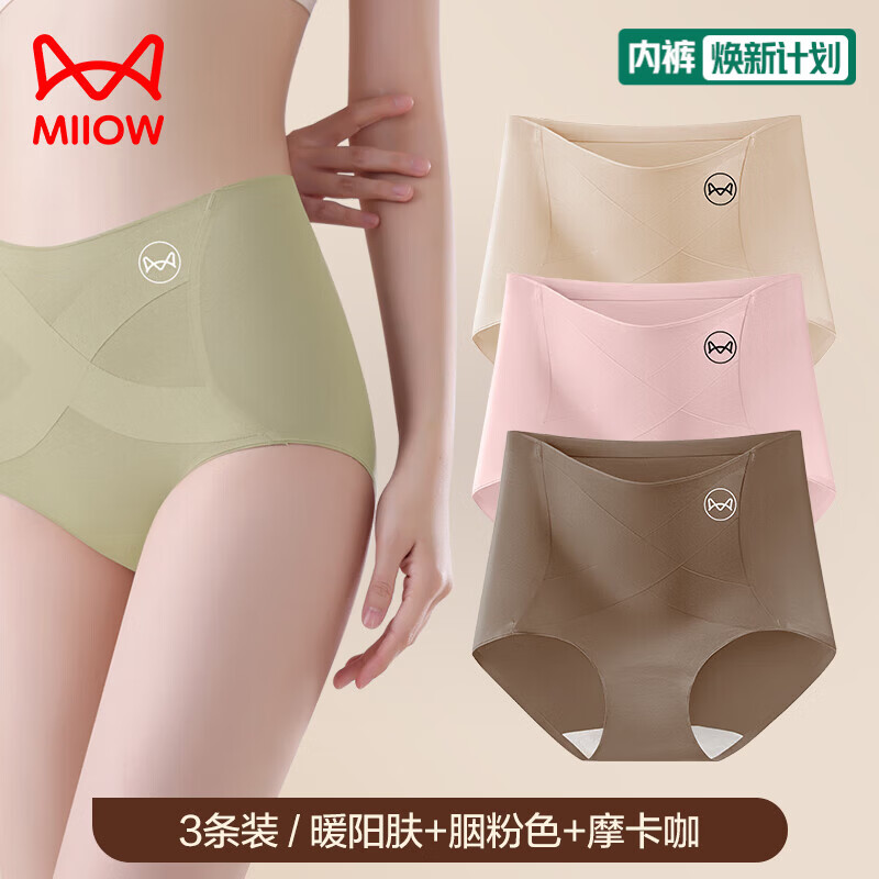 猫人3条装女士内裤高腰纯棉无痕内裤7A聚乳酸抑菌裆三角裤内裤女 D-暖阳肤+胭粉色+摩卡咖 3条 2XL (140-160斤)