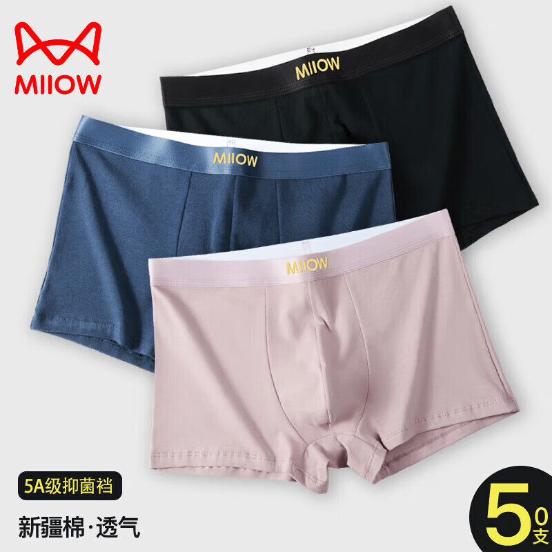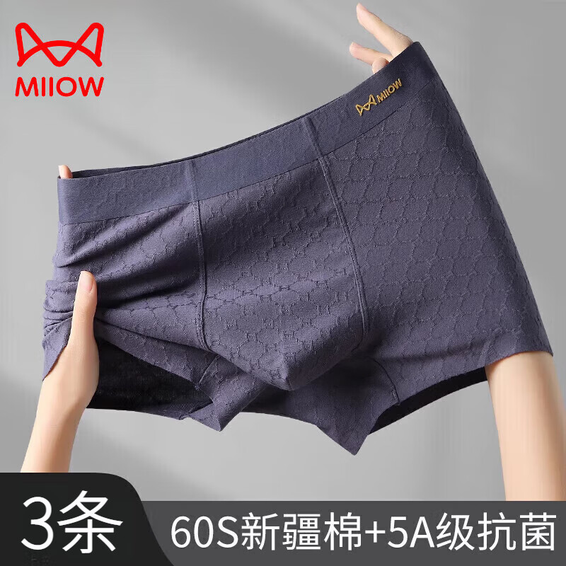 猫人(MiiOW)男士内裤男纯棉5A裆平角裤青年中腰四角裤短裤衩底裤头运动宽松款 3条 经典简约F 装 2XL 建议体重140-160斤内