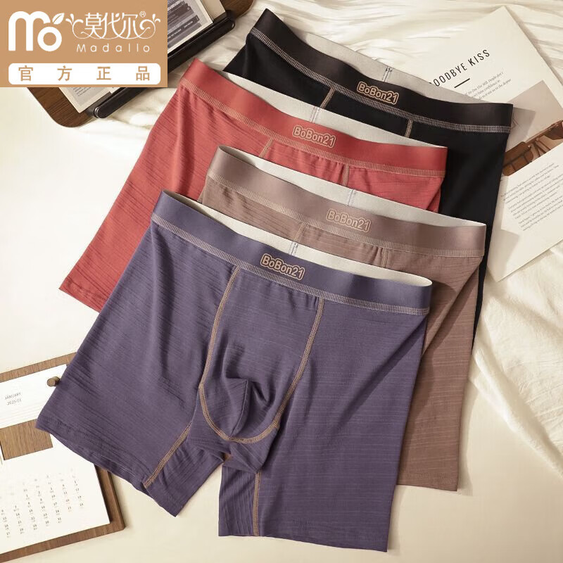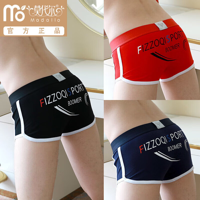 莫代尔男士内裤男纯棉四角裤个性平角裤高档舒适透气裤衩男生潮流裤头男 【黑色+红色+藏青】 3条 2XL 体重140-160斤