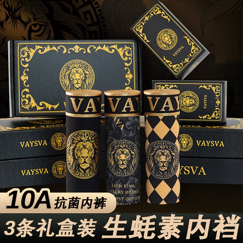 香港贵茨唤醒野兽男士内裤按摩颗粒10A抑菌生蚝素短裤平角裤礼盒 [唤醒雄狮内裤-3条礼盒装] 2XL (140-160)