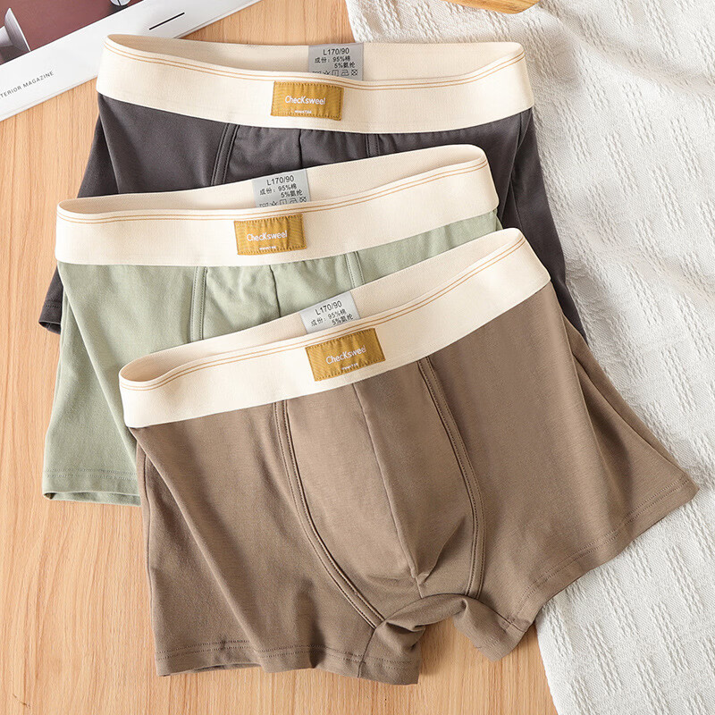 森马(Semir)2-3条男士内裤男纯棉四角裤舒适透气青少年简约时尚平角短裤头潮 灰+绿+咖 M (建议75-95斤)