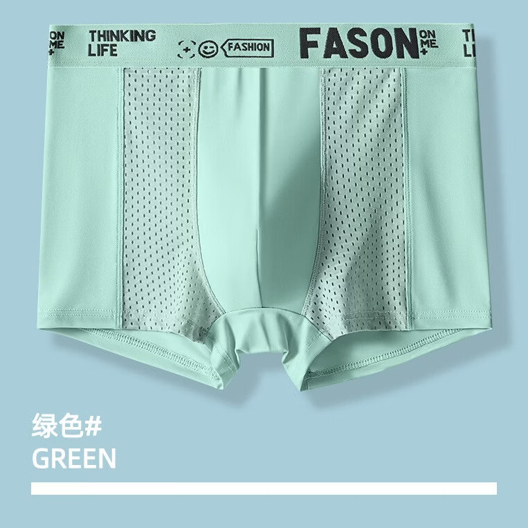 有只绵2026春夏男士内裤男冰丝大码透气平角裤男生四角裤头 绿色+蓝色+浅灰 3条 2XL 120-140斤