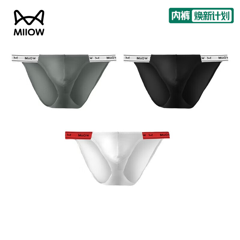 猫人(MiiOW)低腰男士内裤3条高开男三角裤冰丝舒适透气夏季男式裤头 黑色+白色+灰色 2XL (140-160斤)
