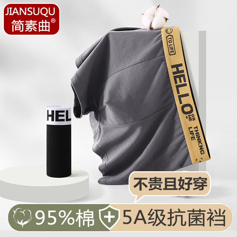 简素曲(JIANSUQU) 纯棉男士内裤舒适5A抗菌平角裤纯色棉质四角裤时尚潮流Hello内裤 【5A级抗菌裆部】 颜色随机 2条 3XL (140-165斤)