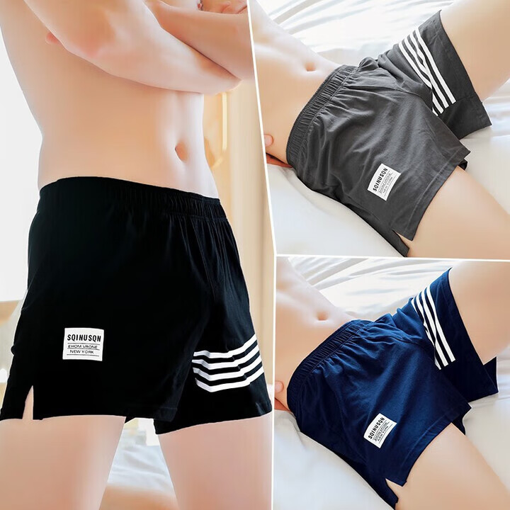 狮奇诺男士内裤男纯棉宽松阿罗裤男平角裤大码裤衩秋冬四角内裤居家短裤 黑色+深蓝+灰色 (1224) 3条 2XL 【150-170斤】