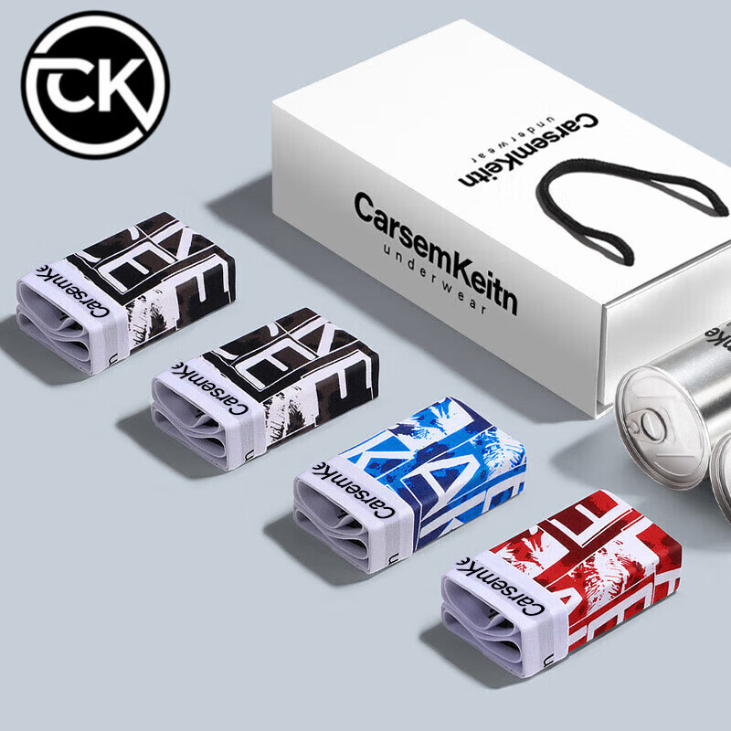 CK官方旗舰店男士精梳棉透气平角内裤夏季新款运动印花四角短裤头潮 C666黑2+红+蓝银罐礼盒 3XL (185) 185-205