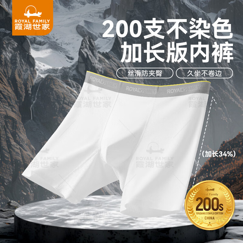 霞湖世家【尊贵系列加长版】男士聚乳酸里档7A抑菌200支内裤5082 2XL 3条