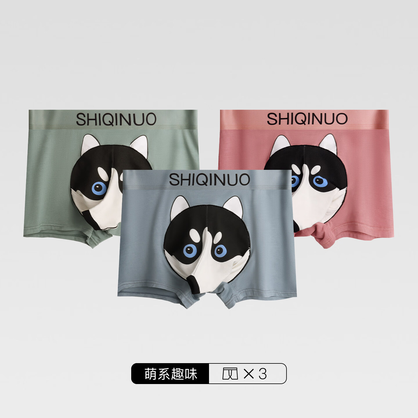 狮奇诺(SQINUSQN)莫代尔男士内裤男枪弹分离卡通动漫个性男士平角裤立体小狗内裤 灰绿+藕红+灰蓝 3条 2XL 建议140-160斤