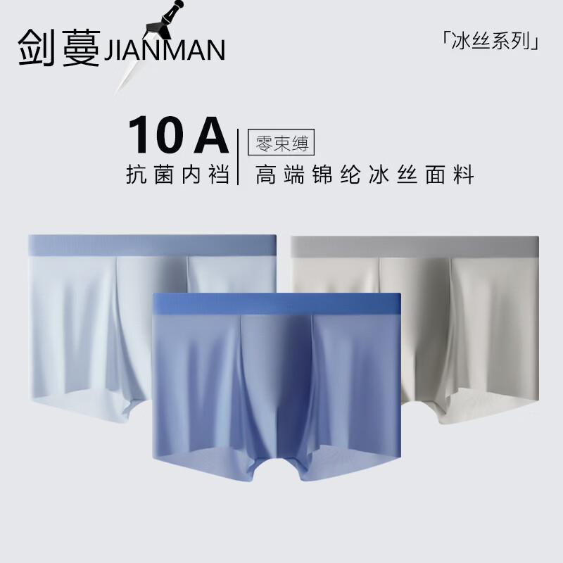 剑蔓男士内裤男平角裤冰丝10A抗菌内档宽松男生四角短裤头春夏季薄款 3条装混色 2XL 建议130-150斤