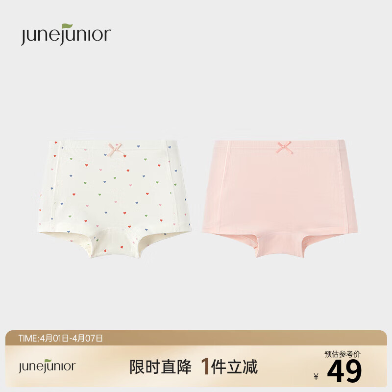junejunior儿童内裤抑菌3-12岁男女童立体剪裁平角裤2件装 彩虹糖【女童】 2条 110 (建议体重30-37斤)